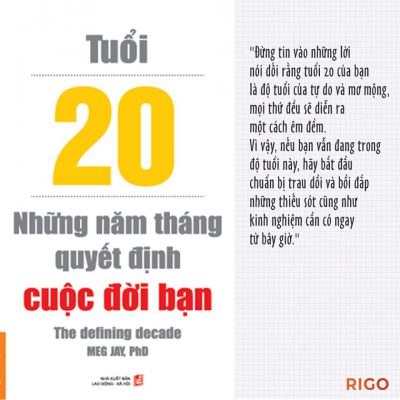 Xin đừng lãng phí những năm tháng đẹp nhất của cuộc đời bạn để làm những điều vô nghĩa. Vì vậy, nếu bạn vẫn đang trong độ tuổi này, hãy bắt đầu chuẩn bị trau dồi và bồi đắp những thiếu sót cũng như kinh nghiệm cần có ngay từ bây giờ. Nếu đã trải qua giai đoạn này, xin hãy giúp những người đang và sẽ bước vào giai đoạn này định hướng được trước những “ngã tư đường đời” đầy thông tin nhiễu động và sự bối rối khi phải lựa chọn và bước tiếp. Bởi những điều này sẽ có sức ảnh hưởng vô cùng lớn trong sự nghiệp, hôn nhân và hạnh phúc sau này của bạn – những con người của độ tuổi 20.