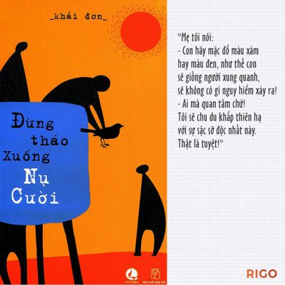 “Người lớn thường lo nghĩ khôn nguôi, nhất là khi bạn cao mét rưỡi, mang giày thể thao màu đỏ, mê áo thun màu vàng cốm và muốn trở thành nhạc sĩ hát rong. Mẹ tôi nói: “Con hãy mặc đồ màu xám hay màu đen, như thế con sẽ giống người xung quanh, sẽ không có gì nguy hiểm xảy ra!” – Ai mà quan tâm chứ! Tôi sẽ chu du khắp thiên hạ với sự sặc sỡ độc nhất này. Thật là tuyệt!”