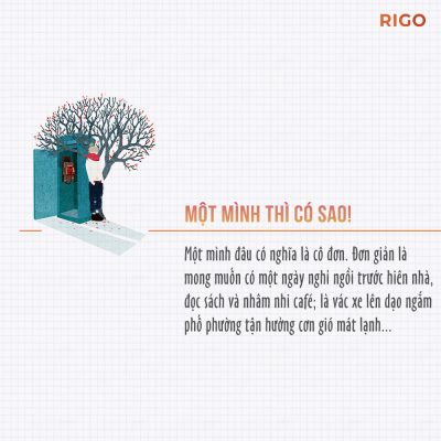 Một mình không có nghĩa là cô đơn. Mà thậm chí những người một mình quen rồi thường rất độc lập tự chủ, thậm chí là trở nên mạnh mẽ, quyết đoán và dễ bề tha thứ để sống một cách nhẹ nhàng hơn.