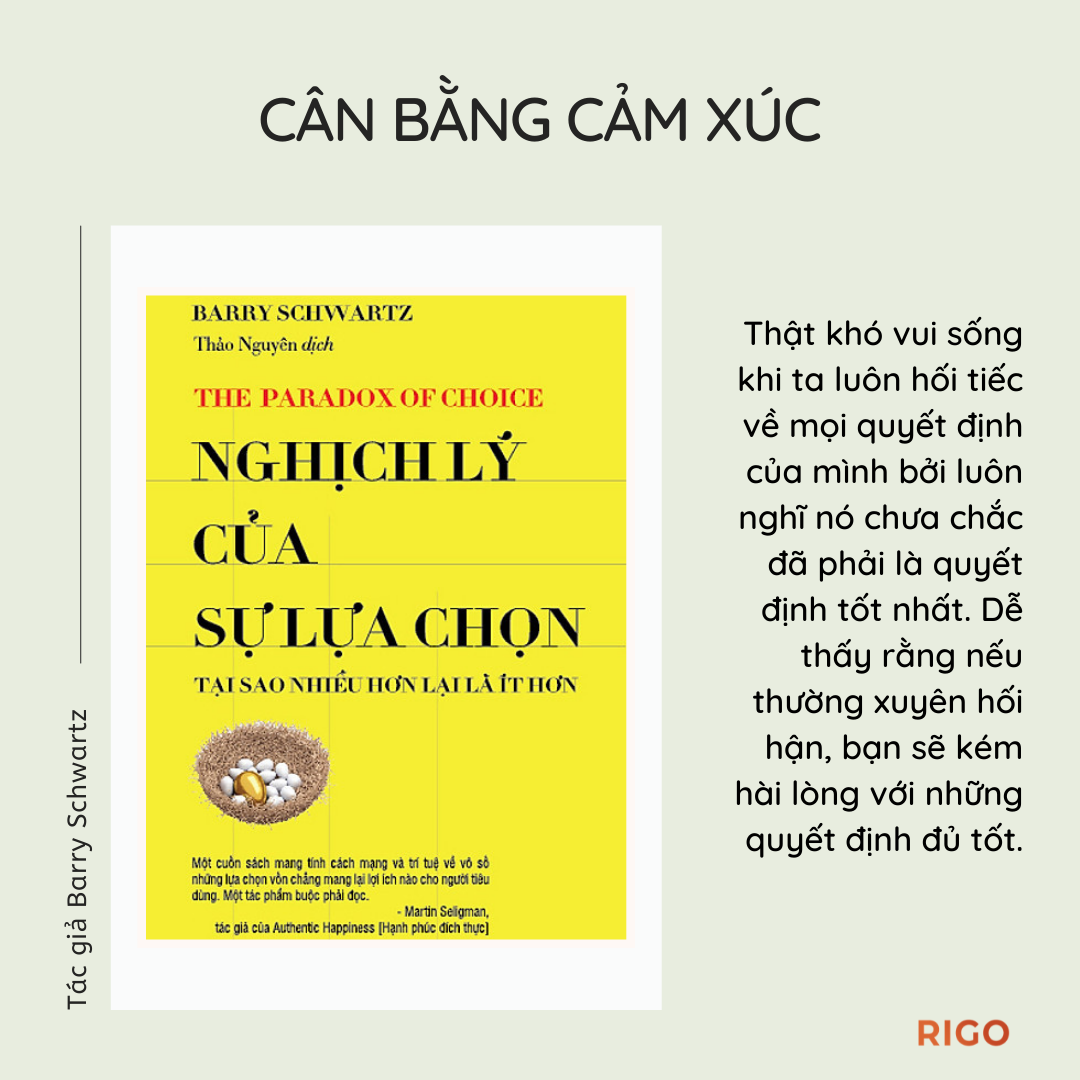 Đây là cuốn sách có giá trị vì hai lý do. Thứ nhất, nó đã biện luận một cách đầy sức thuyết phục rằng chúng ta sẽ sống tốt hơn nếu có ít lựa chọn hơn, và rằng nhiều người trong chúng ta đang phải rất vất vả để đi đến những quyết định lựa chọn tốt nhất. Thứ hai, cuốn sách cũng dành một lời giới thiệu đầy hấp dẫn về xu hướng nghiên cứu hiện tại trong ngành tâm lý học về lựa chọn và cuộc sống con người.