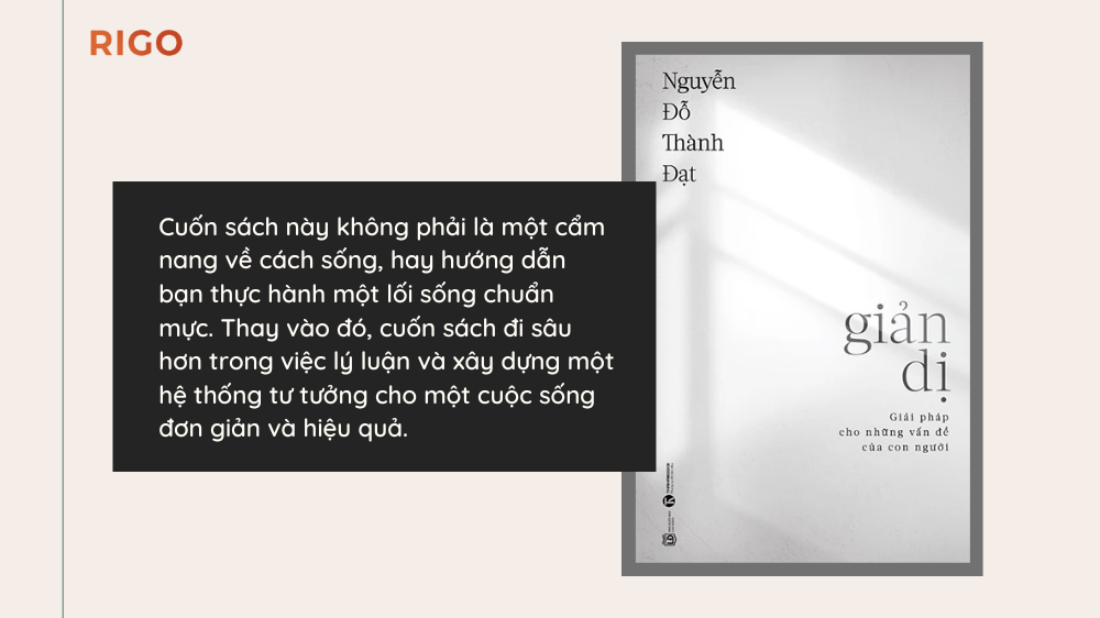 Cuốn sách này không phải là một cẩm nang về cách sống, hay hướng dẫn bạn thực hành một lối sống chuẩn mực. Thay vào đó, cuốn sách đi sâu hơn trong việc lý luận và xây dựng một hệ thống tư tưởng cho một cuộc sống đơn giản và hiệu quả.