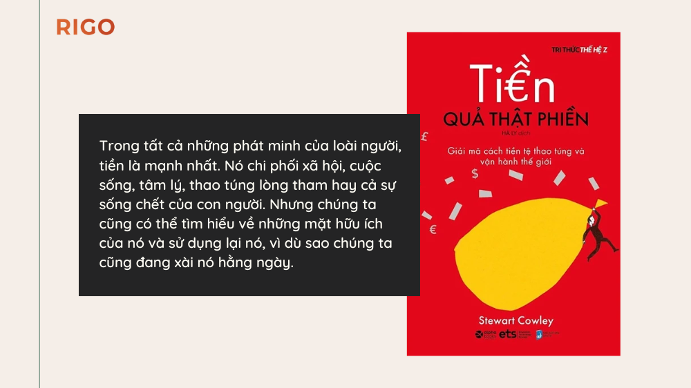Trong tất cả những phát minh của loài người, tiền là mạnh nhất. Nó chi phối xã hội, cuộc sống, tâm lý, thao túng lòng tham hay cả sự sống chết của con người. Nhưng chúng ta cũng có thể tìm hiểu về những mặt hữu ích của nó và sử dụng lại nó, vì dù sao chúng ta cũng đang xài nó hằng ngày.