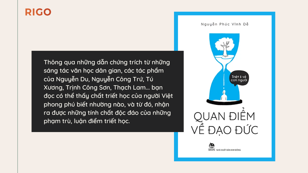 Thông qua những dẫn chứng trích từ những sáng tác văn học dân gian, các tác phẩm của Nguyễn Du, Nguyễn Công Trứ, Tú Xương, Trịnh Công Sơn, Thạch Lam… bạn đọc có thể thấy chất triết học của người Việt phong phú biết nhường nào, và từ đó, nhận ra được những tính chất độc đáo của những phạm trù, luận điểm triết học.