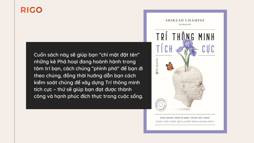 Cuốn sách này sẽ giúp bạn “chỉ mặt đặt tên” những kẻ Phá hoại đang hoành hành trong tâm trí bạn, cách chúng “phỉnh phờ” để bạn đi theo chúng, đồng thời hướng dẫn bạn cách kiểm soát chúng để xây dựng Trí thông minh tích cực – thứ sẽ giúp bạn đạt được thành công và hạnh phúc đích thực trong cuộc sống.