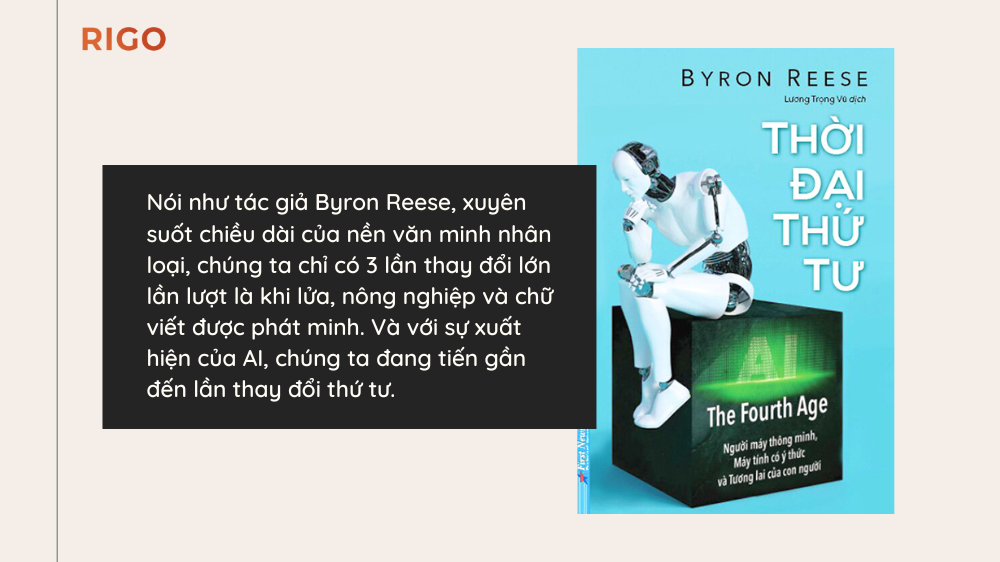 Nói như tác giả Byron Reese, xuyên suốt chiều dài của nền văn minh nhân loại, chúng ta chỉ có 3 lần thay đổi lớn lần lượt là khi lửa, nông nghiệp và chữ viết được phát minh. Và với sự xuất hiện của AI, chúng ta đang tiến gần đến lần thay đổi thứ tư.