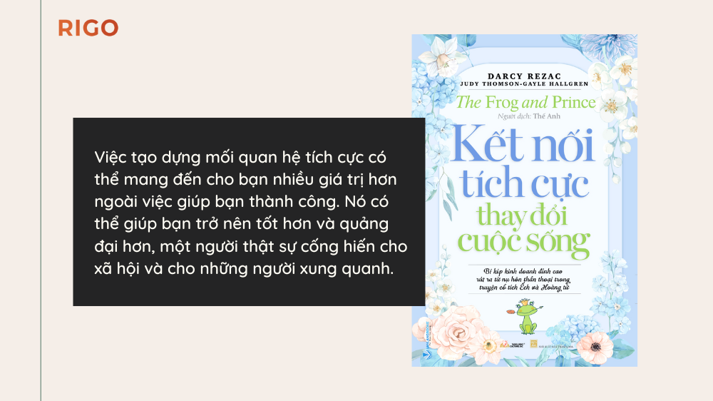 Trên đời này không có phương pháp nào là dành cho tất cả mọi người. Cuốn sách chỉ sẽ thẳng thắn chia sẻ với bạn về lợi ích mà bạn sẽ nhận được từ những mối quan hệ ý nghĩa, cũng như nói thật với bạn về việc những mối quan hệ như thế cần nhiều nỗ lực đến mức nào.