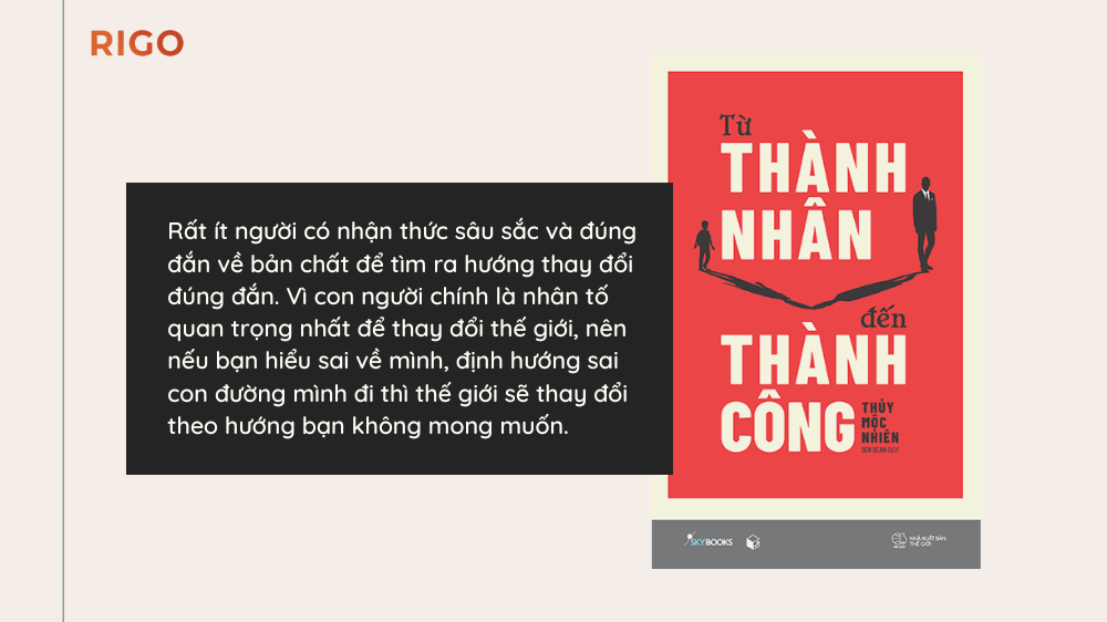 Khoảng cách lớn nhất giữa người với người chính là sự hiểu biết về thế giới. Rất ít người có nhận thức sâu sắc và đúng đắn về bản chất để tìm ra hướng thay đổi đúng đắn. Vì con người chính là nhân tố quan trọng nhất để thay đổi thế giới, nên nếu bạn hiểu sai về mình, định hướng sai con đường mình đi thì thế giới sẽ thay đổi theo hướng bạn không mong muốn.