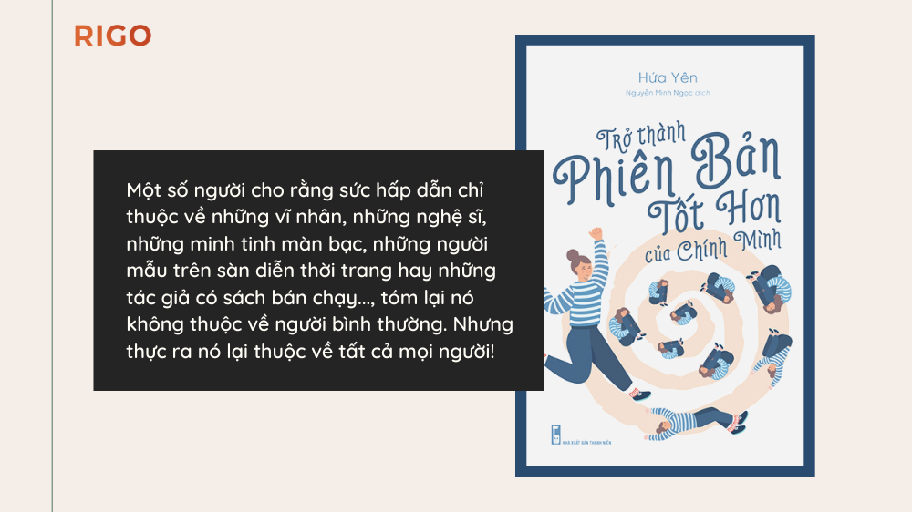 Trở thành phiên bản tốt đẹp nhất của chính mình luôn là một khái niệm khó phân định rõ ràng. Trở nên giàu có, nổi tiếng hơn, sống lành mạnh, tử tế hơn,… Hay nói cách khác, chính là việc bạn sẵn sàng đảm đương những trọng trách mới đối với bản thân và những người xung quanh. Nhưng, dù định nghĩa thế nào, chỉ có bạn là người duy nhất thực sự hiểu ý nghĩa của cụm từ “PHIÊN BẢN TỐT ĐẸP NHẤT”.