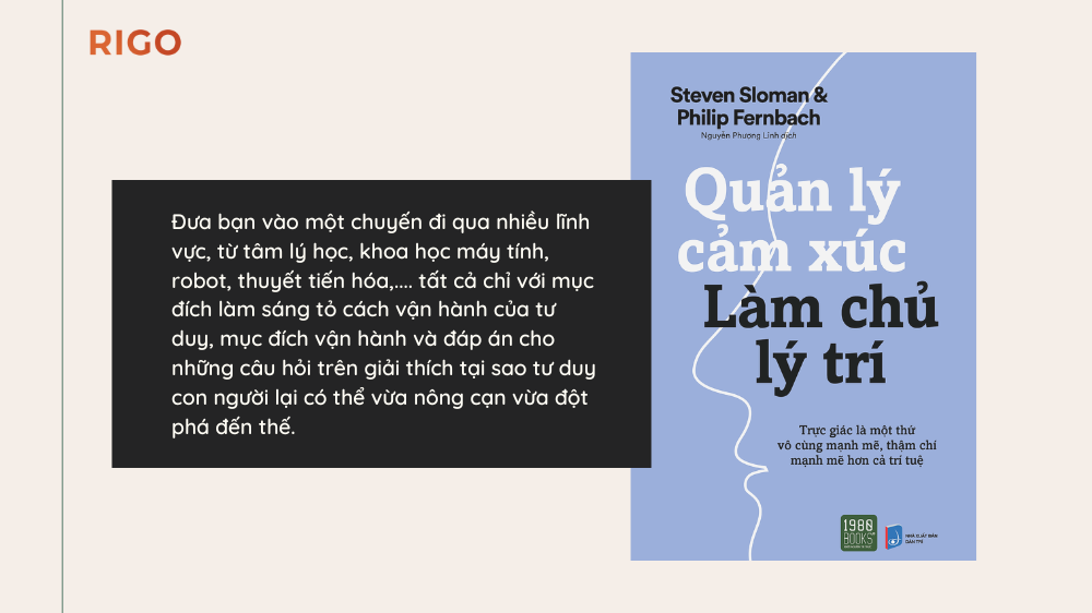 Đưa bạn vào một chuyến đi qua nhiều lĩnh vực, từ tâm lý học, khoa học máy tính, robot, thuyết tiến hóa,…. tất cả chỉ với mục đích làm sáng tỏ cách vận hành của tư duy, mục đích vận hành và đáp án cho những câu hỏi trên giải thích tại sao tư duy con người lại có thể vừa nông cạn vừa đột phá đến thế.