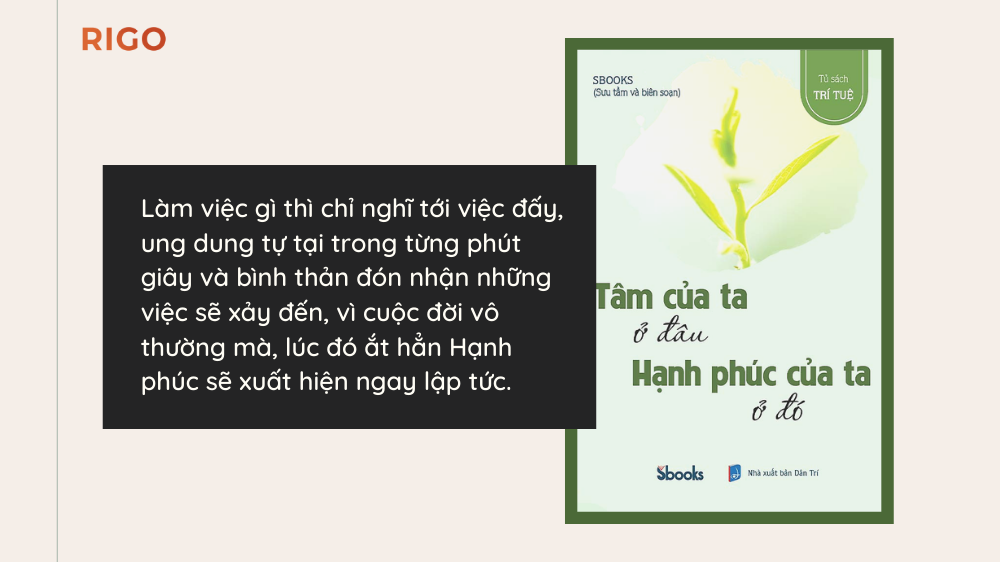“Tâm của ta ở đâu – Hạnh phúc của ta ở đó”, làm việc gì thì chỉ nghĩ tới việc đấy, ung dung tự tại trong từng phút giây và bình thản đón nhận những việc sẽ xảy đến, vì cuộc đời vô thường mà, lúc đó ắt hẳn Hạnh phúc sẽ xuất hiện ngay lập tức.