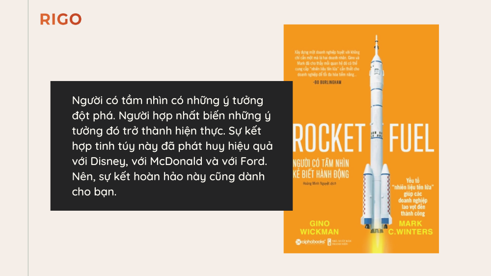 Người có tầm nhìn có những ý tưởng đột phá. Người hợp nhất biến những ý tưởng đó trở thành hiện thực. Sự kết hợp tinh túy này đã phát huy hiệu quả với Disney, với McDonald và với Ford. Nên, sự kết hoàn hảo này cũng dành cho bạn.