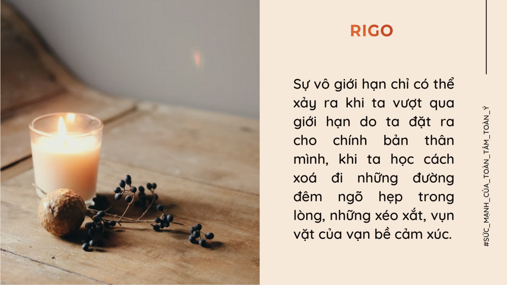 Sự vô giới hạn chỉ có thể xảy ra khi ta vượt qua giới hạn do ta đặt ra cho chính bản thân mình, khi ta học cách xoá đi những đường đêm ngõ hẹp trong lòng, những xéo xắt, vụn vặt của vạn bề cảm xúc.