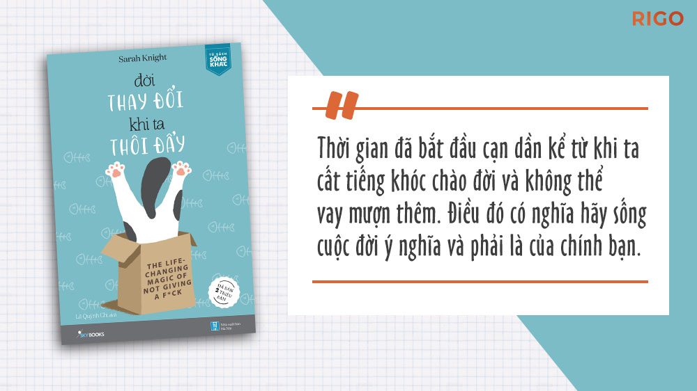 Thời gian đã bắt đầu cạn dần kể từ khi ta cất tiếng khóc chào đời và không thể vay mượn thêm. Điều đó có nghĩa rằng bạn phải sống một cuộc đời thật ý nghĩa, có những trải nghiệm đáng giá và cuộc đời đó phải là của bạn.
