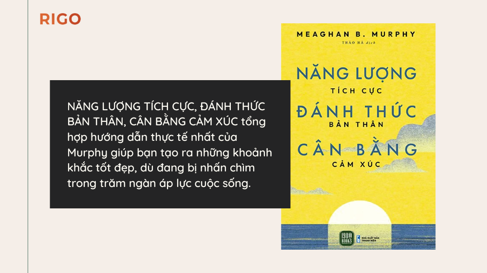 NĂNG LƯỢNG TÍCH CỰC, ĐÁNH THỨC BẢN THÂN, CÂN BẰNG CẢM XÚC tổng hợp hướng dẫn thực tế nhất của Murphy giúp bạn tạo ra những khoảnh khắc tốt đẹp, dù đang bị nhấn chìm trong trăm ngàn áp lực cuộc sống.