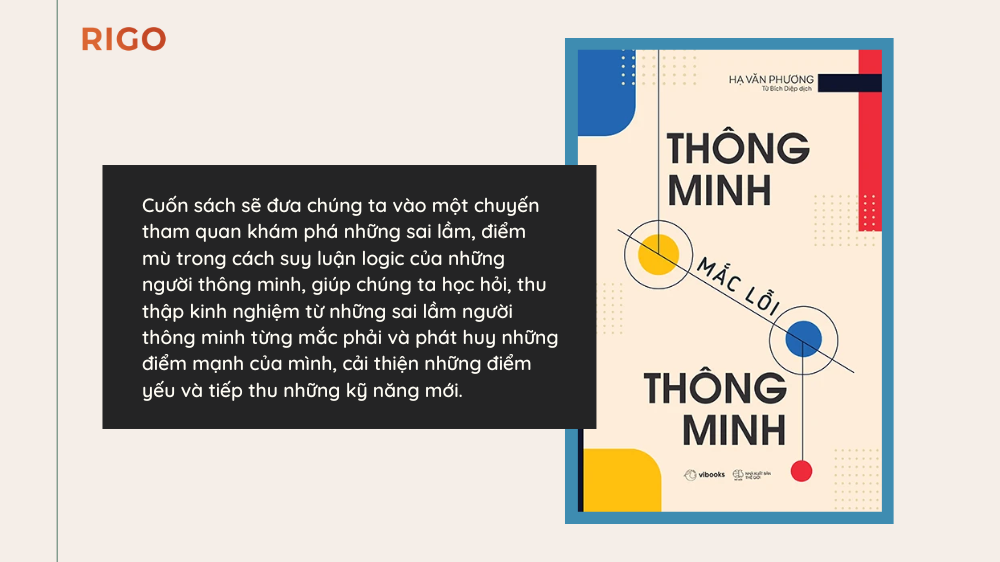 Cuốn sách sẽ đưa chúng ta vào một chuyến tham quan khám phá những sai lầm, điểm mù trong cách suy luận logic của những người thông minh, giúp chúng ta học hỏi, thu thập kinh nghiệm từ những sai lầm người thông minh từng mắc phải và phát huy những điểm mạnh của mình, cải thiện những điểm yếu và tiếp thu những kỹ năng mới.