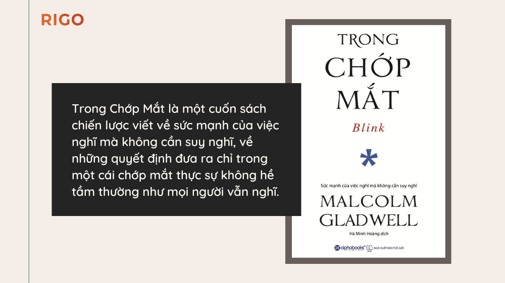 Trong Chớp Mắt là một cuốn sách chiến lược viết về sức mạnh của việc nghĩ mà không cần suy nghĩ, về những quyết định đưa ra chỉ trong một cái chớp mắt thực sự không hề tầm thường như mọi người vẫn nghĩ.