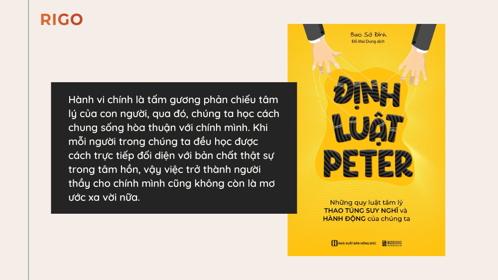 Hành vi chính là tấm gương phản chiếu tâm lý của con người, qua đó, chúng ta học cách chung sống hòa thuận với chính mình. Khi mỗi người trong chúng ta đều học được cách trực tiếp đối diện với bản chất thật sự trong tâm hồn, vậy việc trở thành người thầy cho chính mình cũng không còn là mơ ước xa vời nữa.