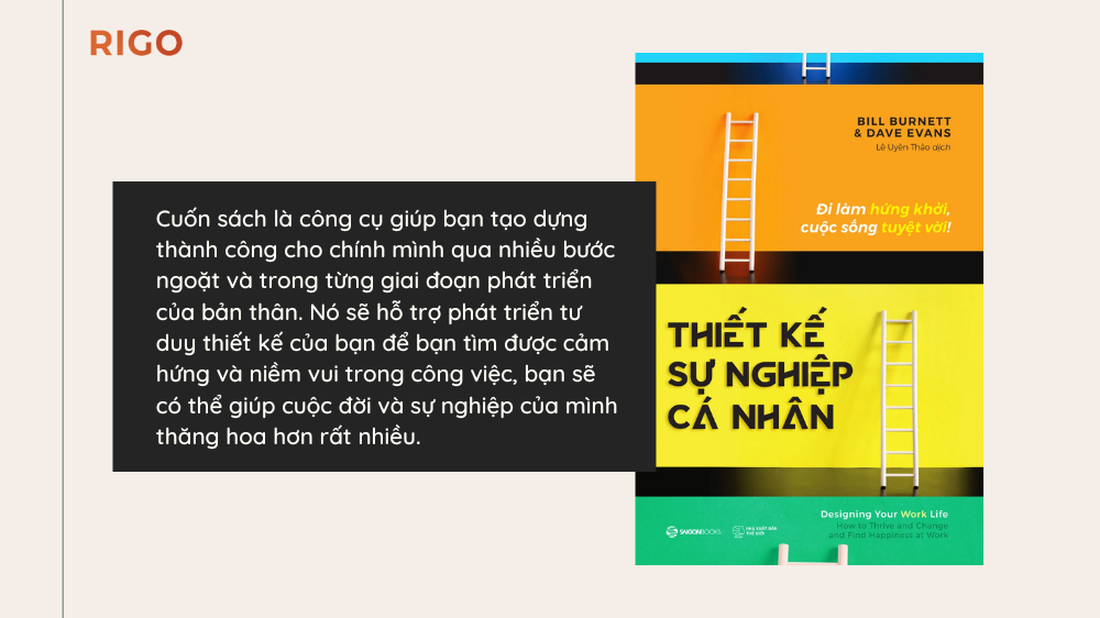 Cuốn sách là công cụ giúp bạn tạo dựng thành công cho chính mình qua nhiều bước ngoặt và trong từng giai đoạn phát triển của bản thân. Nó sẽ hỗ trợ phát triển tư duy thiết kế của bạn để bạn tìm được cảm hứng và niềm vui trong công việc, bạn sẽ có thể giúp cuộc đời và sự nghiệp của mình thăng hoa hơn rất nhiều.