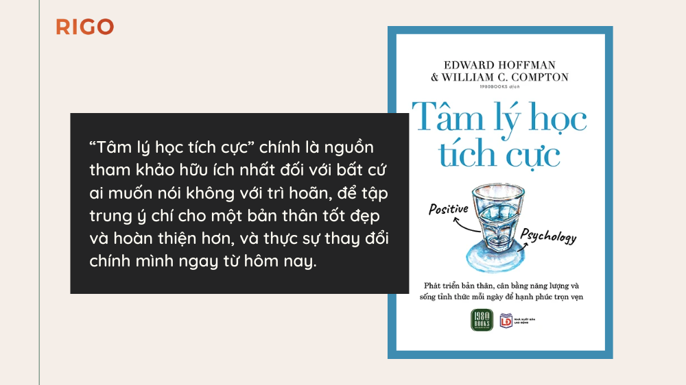 “Tâm lý học tích cực” chính là nguồn tham khảo hữu ích nhất đối với bất cứ ai muốn nói không với trì hoãn, để tập trung ý chí cho một bản thân tốt đẹp và hoàn thiện hơn, và thực sự thay đổi chính mình ngay từ hôm nay.