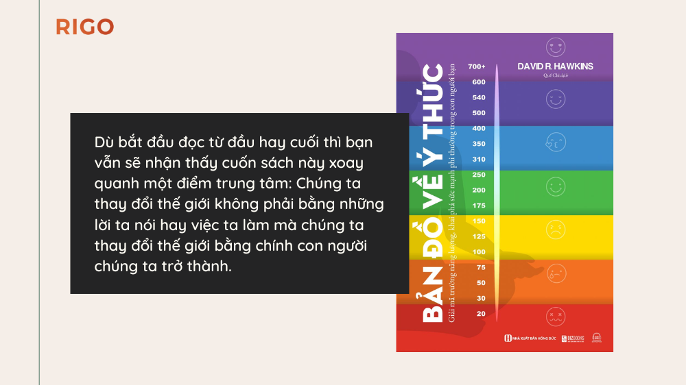 Bản đồ mà David tạo ra có một thang đo ý thức loài người từ thấp đến cao. Anh đã phát triển nó để chúng ta hiểu tại sao trên thế giới có cả năng lượng thấp lẫn năng lượng cao, tại sao có người làm những việc tồi tệ, khủng khiếp, có người lại thuần khiết nhân từ. Đôi khi người ta nghĩ rằng họ sẽ tiến hoá bằng cách đắm mình trong những trường năng lượng cao nhất. Nhưng mục đích của Bản đồ là công cụ để bạn học hỏi và tiến bộ. Nếu bạn thành thực về những điểm yếu, điểm khó khăn của mình, bạn sẽ nhận ra cách vượt qua nó và từ đó bạn tự động tiến lên trên bản đồ.