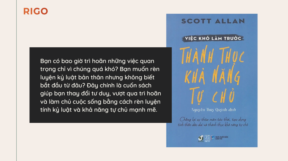 Bạn có bao giờ trì hoãn những việc quan trọng chỉ vì chúng quá khó? Bạn muốn rèn luyện kỷ luật bản thân nhưng không biết bắt đầu từ đâu? Đây chính là cuốn sách giúp bạn thay đổi tư duy, vượt qua trì hoãn và làm chủ cuộc sống bằng cách rèn luyện tính kỷ luật và khả năng tự chủ mạnh mẽ.
