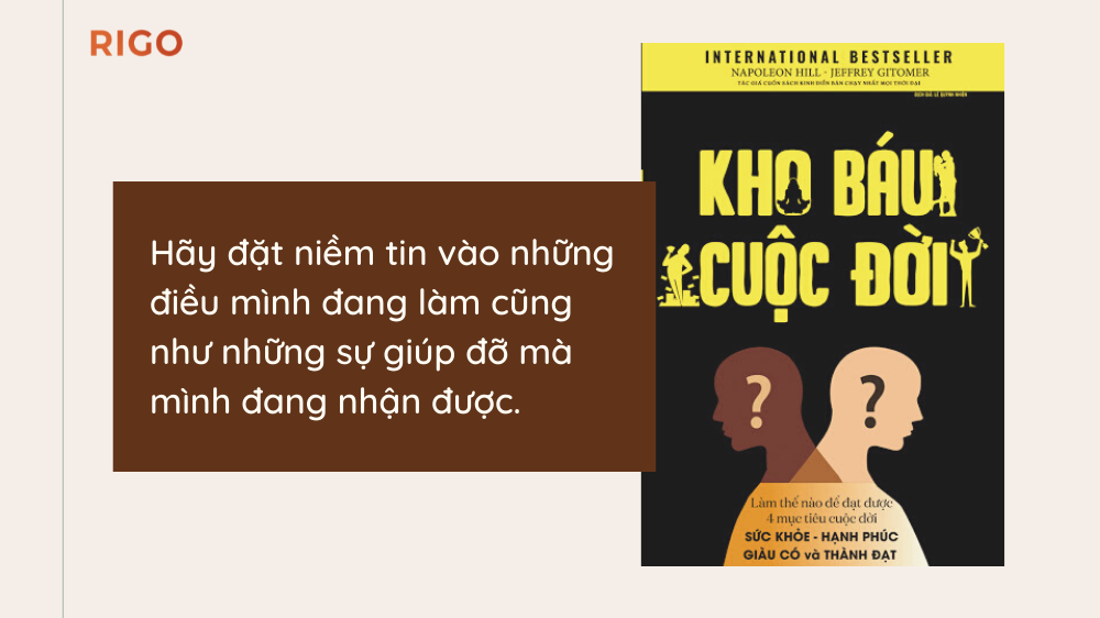 Hãy đặt niềm tin vào những điều mình đang làm cũng như những sự giúp đỡ mà mình đang nhận được, và bạn sẽ chiến thắng. Bạn sẽ không phải thất vọng đâu.