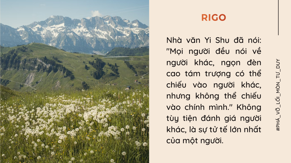 Nhà văn Yi Shu đã nói: “Mọi người đều nói về người khác, ngọn đèn cao tám trượng có thể chiếu vào người khác, nhưng không thể chiếu vào chính mình.” Không tùy tiện đánh giá người khác, là sự tử tế lớn nhất của một người.