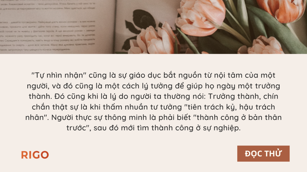 “Tự nhìn nhận” cũng là sự giáo dục bắt nguồn từ nội tâm của một người, và đó cũng là một cách lý tưởng để giúp họ ngày một trưởng thành. Đó cũng khi là lý do người ta thường nói: Trưởng thành, chín chắn thật sự là khi thấm nhuần tư tưởng “tiên trách kỷ, hậu trách nhân”.