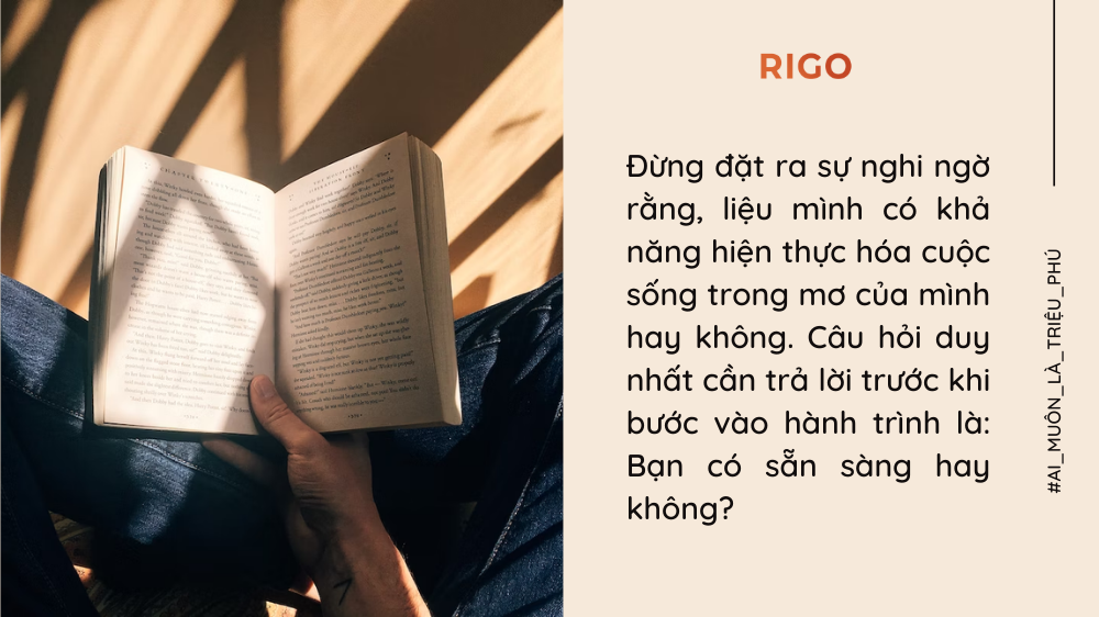 Đừng đặt ra sự nghi ngờ rằng, liệu mình có khả năng hiện thực hóa cuộc sống trong mơ của mình hay không. Câu hỏi duy nhất cần trả lời trước khi bước vào hành trình là: Bạn có sẵn sàng hay không?