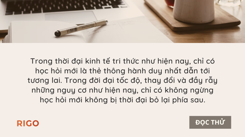 Trong thời đại kinh tế tri thức như hiện nay, chỉ có học hỏi mới là thẻ thông hành duy nhất dẫn tới tương lai. Trong đời đại tốc độ, thay đổi và đầy rẫy những nguy cơ như hiện nay, chỉ có không ngừng học hỏi mới không bị thời đại bỏ lại phía sau.
