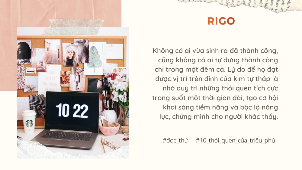 Không có ai vừa sinh ra đã thành công, cũng không có ai tự dưng thành công chỉ trong một đêm cả. Lý do để họ đạt được vị trí trên đỉnh của kim tự tháp là nhờ duy trì những thói quen tích cực trong suốt một thời gian dài, tạo cơ hội khai sáng tiềm năng và bộc lộ năng lực, chứng minh cho người khác thấy.