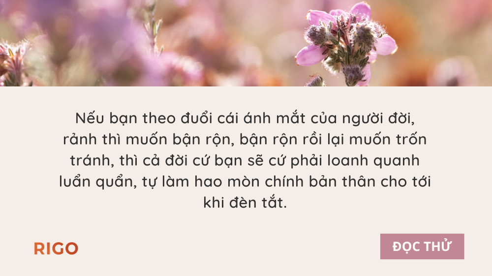 Nếu bạn theo đuổi cái ánh mắt của người đời, rảnh thì muốn bận rộn, bận rộn rồi lại muốn trốn tránh, thì cả đời cứ bạn sẽ cứ phải loanh quanh luẩn quẩn, tự làm hao mòn chính bản thân cho tới khi đèn tắt.