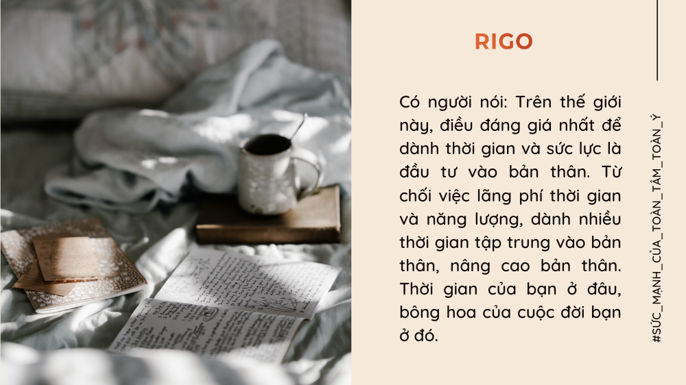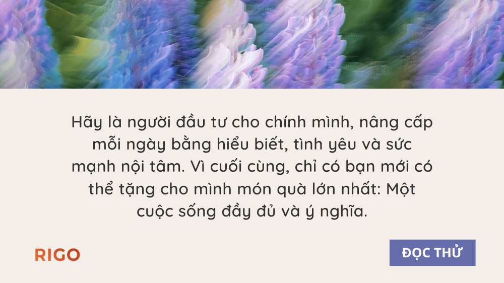 Hãy là người đầu tư cho chính mình, nâng cấp mỗi ngày bằng hiểu biết, tình yêu và sức mạnh nội tâm. Vì cuối cùng, chỉ có bạn mới có thể tặng cho mình món quà lớn nhất: Một cuộc sống đầy đủ và ý nghĩa.