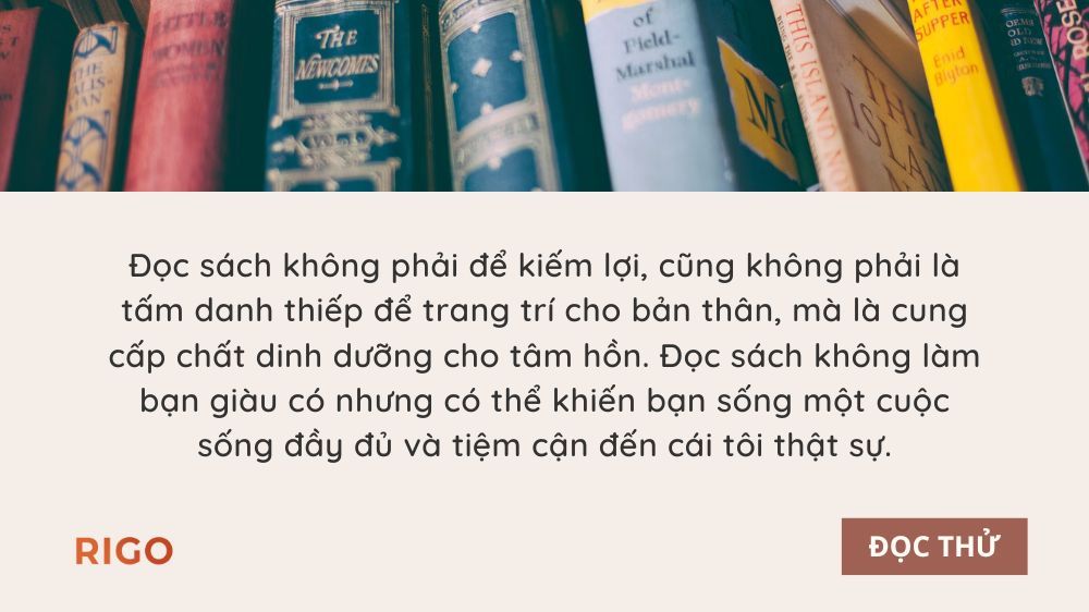 Đọc sách không phải để kiếm lợi, cũng không phải là tấm danh thiếp để trang trí cho bản thân, mà là cung cấp chất dinh dưỡng cho tâm hồn. Đọc sách không làm bạn giàu có nhưng có thể khiến bạn sống một cuộc sống đầy đủ và tiệm cận đến cái tôi thật sự.