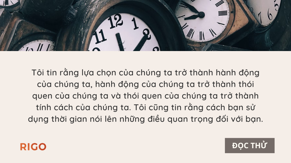 Tôi tin rằng lựa chọn của chúng ta trở thành hành động của chúng ta, hành động của chúng ta trở thành thói quen của chúng ta và thói quen của chúng ta trở thành tính cách của chúng ta. Tôi cũng tin rằng cách bạn sử dụng thời gian nói lên những điều quan trọng đối với bạn.