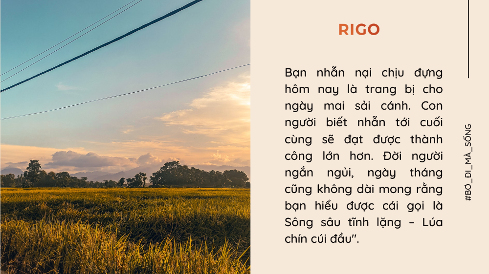 Bạn nhẫn nại chịu đựng hôm nay là trang bị cho ngày mai sải cánh. Con người biết nhẫn tới cuối cùng sẽ đạt được thành công lớn hơn. Đời người ngắn ngủi, ngày tháng cũng không dài mong rằng bạn hiểu được cái gọi là Sông sâu tĩnh lặng – Lúa chín cúi đầu”.