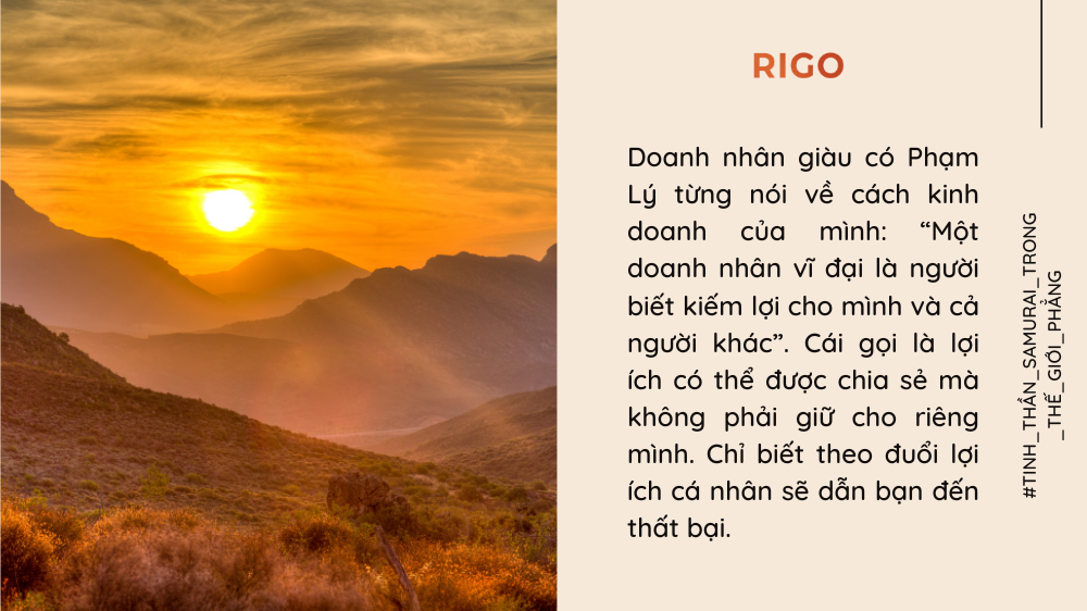 Doanh nhân giàu có Phạm Lý từng nói về cách kinh doanh của mình: “Một doanh nhân vĩ đại là người biết kiếm lợi cho mình và cả người khác”. Cái gọi là lợi ích có thể được chia sẻ mà không phải giữ cho riêng mình. Chỉ biết theo đuổi lợi ích cá nhân sẽ dẫn bạn đến thất bại.