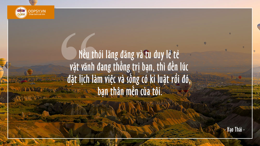 Câu nói ấy thật chẳng có gì “phù hợp” với một tâm trạng đang muốn nghỉ ngơi, có điều lại đủ khiến người ta chấn động. Giống như một lời nhắc thẳng thắn vậy. Để tâm trí mất kỉ luật, thì sao có thể làm mọi chuyện tốt đúng, sao có thể đạt đến trí tuệ và bình yên. Sẽ có rất nhiều hệ lụy nếu ta cứ dung dưỡng cho mình tình trạng ấy
