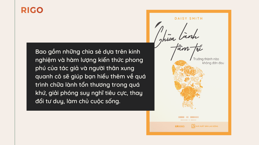 Cuốn sách CHỮA LÀNH TÂM TRÍ – TRƯỞNG THÀNH NÀO KHÔNG ĐỚN ĐAU bao gồm những chia sẻ dựa trên kinh nghiệm và hàm lượng kiến thức phong phú của tác giả và người thân xung quanh cô sẽ giúp bạn hiểu thêm về quá trình chữa lành tổn thương trong quá khứ, giải phóng suy nghĩ tiêu cực, thay đổi tư duy, làm chủ cuộc sống.