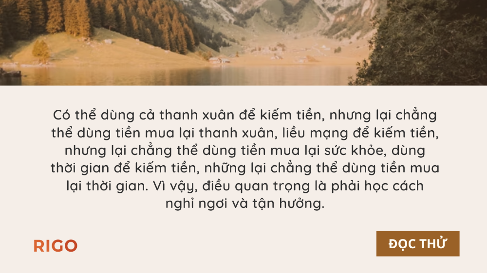 Ngay cả khi dành cả cuộc đời của mình để kiếm tiền khắp thế giới, cũng không thể dùng số tiển đó để đổi lại cả cuộc đời phía trước được.