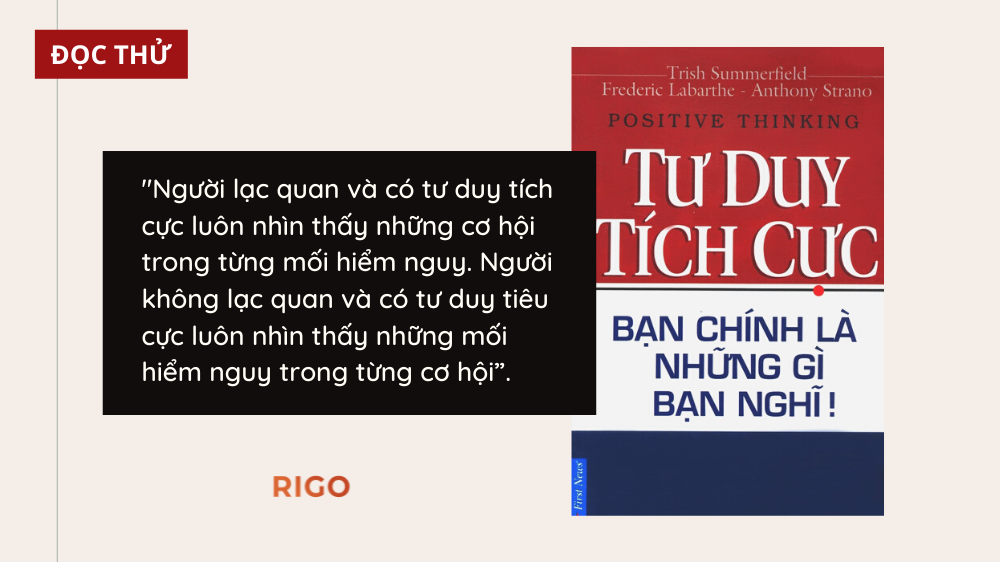 Người lạc quan và có tư duy tích cực luôn nhìn thấy những cơ hội trong từng mối hiểm nguy. Người không lạc quan và có tư duy tiêu cực luôn nhìn thấy những mối hiểm nguy trong từng cơ hội”.