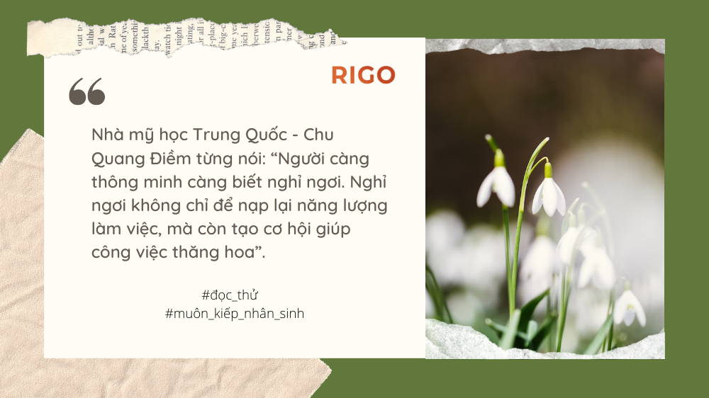 Nhà mỹ học Trung Quốc – Chu Quang Điềm từng nói: “Người càng thông minh càng biết nghỉ ngơi. Nghỉ ngơi không chỉ để nạp lại năng lượng làm việc, mà còn tạo cơ hội giúp công việc thăng hoa”.
