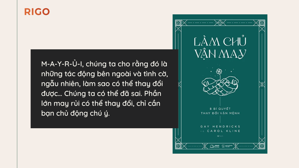 M-A-Y-R-Ủ-I, chúng ta cho rằng đó là những tác động bên ngoài và tình cờ, ngẫu nhiên, làm sao có thể thay đổi được… Chúng ta có thể đã sai. Phần lớn may rủi có thể thay đổi, chỉ cần bạn chủ động chú ý.