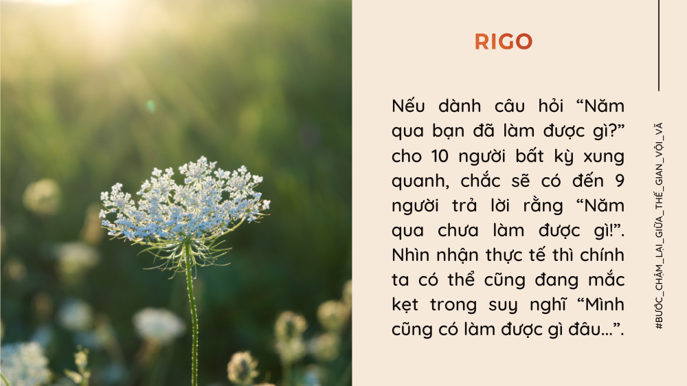 Dẫu biết rằng một năm trôi qua rất nhanh với thật nhiều biến động, nhưng ít nhiều ai trong chúng ta cũng đều có một “thành tựu” đáng được kể tên. Có chăng chúng ta không kịp nhận ra vì mãi bận rộn so sánh, dùng hệ quy chiếu của người khác mà áp đặt lên chính mình.