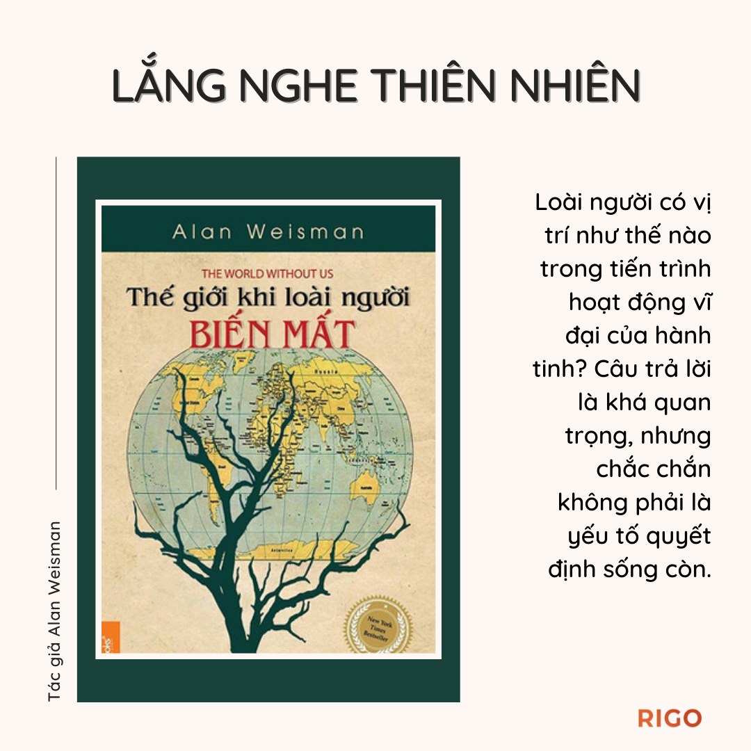 Trong cuốn sách “The world without us” tạm dịch là “Khởi nguyên lại thế giới”, Alan Weisman đưa ra cách tiếp cận hoàn toàn mang tính bản nguyên cho các câu hỏi về sự tác động của loài người lên hành tinh trái đất. Dưới góc nhìn của những chuyên gia trong các lĩnh vực: khoa học khí quyển, bảo tồn nghệ thuật, động vật học, hóa dầu, vật lý thiên văn, lãnh tụ tôn giáo (từ giáo sĩ Do Thái tới các đức Đạt Lai Lạt Ma), cổ sinh vật học … Weisman đã vẽ nên bức tranh hành tinh trái đất có thể sẽ như thế nào nếu không có chúng ta.