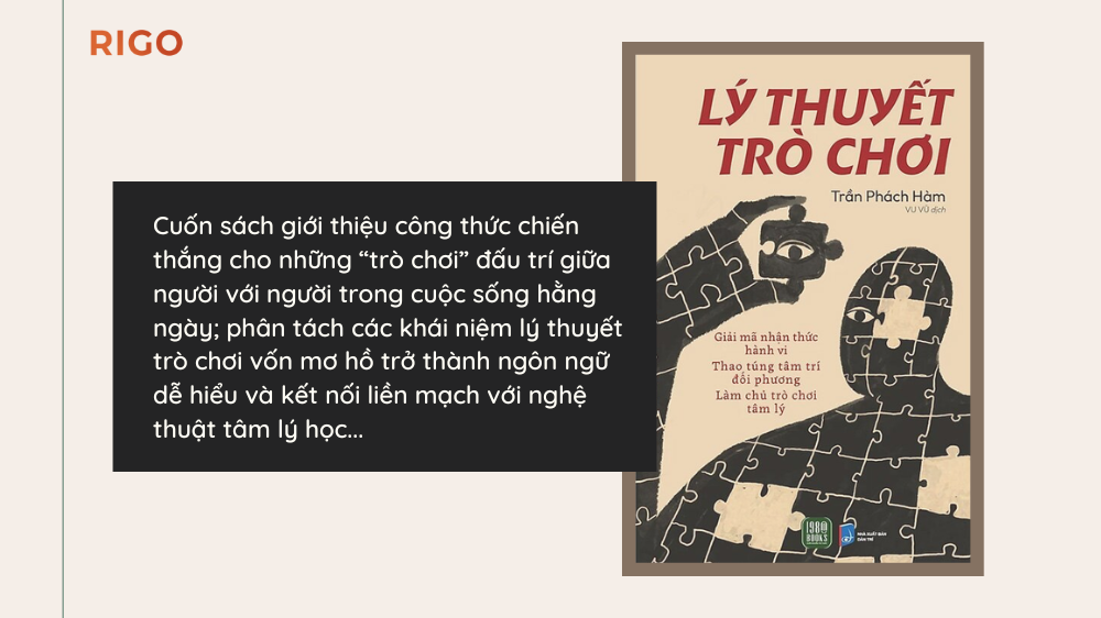 Cuốn sách Lý thuyết trò chơi là bách khoa toàn thư về tâm lý học, về tẩy não và chống lại tẩy não, thao túng và chống lại thao túng, thống trị và chống lại thống trị. Cuốn sách giới thiệu công thức chiến thắng cho những “trò chơi” đấu trí giữa người với người trong cuộc sống hằng ngày; phân tách các khái niệm lý thuyết trò chơi vốn mơ hồ trở thành ngôn ngữ dễ hiểu và kết nối liền mạch với nghệ thuật tâm lý học; cho phép bạn nắm vững những bí ẩn của trò chơi tâm lý trong thời gian ngắn nhất.