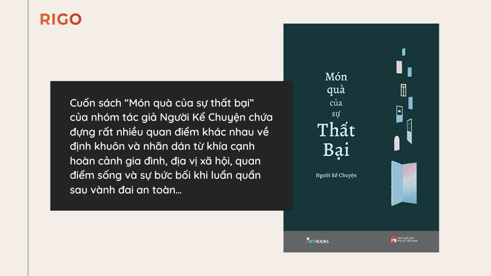 Cuốn sách “Món quà của sự thất bại” của nhóm tác giả Người Kể Chuyện chứa đựng rất nhiều quan điểm khác nhau về định khuôn và nhãn dán từ khía cạnh hoàn cảnh gia đình, địa vị xã hội, quan điểm sống và sự bức bối khi luẩn quẩn sau vành đai an toàn… Và rồi bạn sẽ học được cách thấu cảm, mở những nút thắt trong tâm trí bạn, từ đó tận hưởng và biết ơn tất cả những trải nghiệm mà mình đã và đang có.