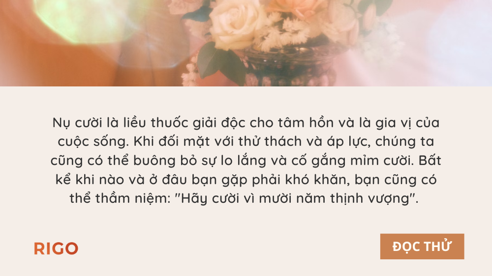 Nụ cười là liều thuốc giải độc cho tâm hồn và là gia vị của cuộc sống. Khi đối mặt với thử thách và áp lực, chúng ta cũng có thể buông bỏ sự lo lắng và cố gắng mỉm cười.