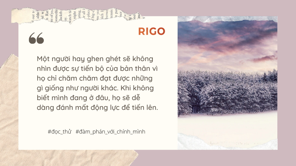 Người chỉ quan tâm đến thành quả của người khác thường sẽ bỏ qua câu chuyện đằng sau những thành tựu đó. Người đố kỵ với người khác không thấy được điểm mạnh của mình và càng mù mờ trước điểm yếu của đối phương. Nếu dành cả đời ghen tị với người khác vì họ làm việc hiệu quả hơn, thăng tiến nhanh hơn, hay giải quyết vấn đề tốt hơn, thì ta sẽ chẳng bao giờ tiến bộ.