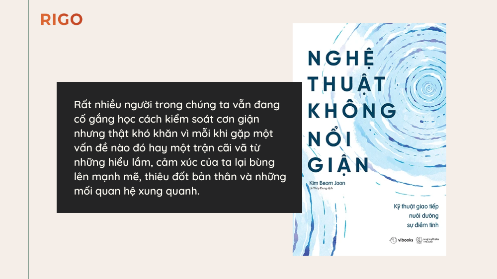Khi viết về chủ đề này, tác giả Kim Beom Joon đã ví hậu quả của cơn phẫn nộ còn bùng nổ dữ dội hơn cả pháo hoa, sự tức giận trong một khoảnh khắc cũng có thể đốt cháy lời nói và tâm hồn người khác thành một đống tro tàn, thiêu rụi tất cả những gì ta từng dày công xây đắp. Và chính bạn – người bị mắc kẹt bởi những cơn giận bốc đồng của chính mình – đang phải loay hoay nghĩ cách giải quyết hậu quả của lời nói tiêu cực với những mối quan hệ đang đi đến bờ vực. Vậy thì hãy để “Nghệ thuật không nổi giận” của tác giả Kim Beom Joon giúp bạn thức tỉnh, luyện tập và sửa chữa.